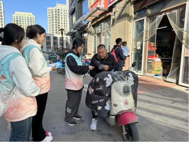 在了解完出警设施设备后,实践团成员们来到了鹊华理想社区。成员们在社区内积极展开了“一盔一带”宣传活动。他们向社区人员详细讲解佩戴头盔和系安全带的重要意义,通过展示事故案例,让社区人员更直观的认识到安全防护措施的重要性。同时,成员们还在现场示范如何正确佩戴头盔,耐心解答了居民的疑问,提高了社区人员的安全意识。