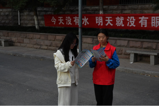 志愿者们悬挂了一面精美的宣传横幅,强调了水资源的宝贵性以及每个人都有责任保护和节约水资源。