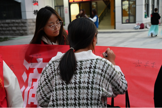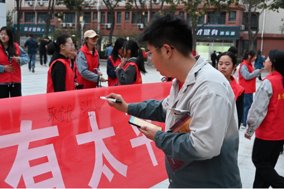 校园中,威尼斯7026vip的师生们积极参与,纷纷签名表达自己的节水承诺。签名的横幅将被展示在校园中,提醒每个人坚守自己的承诺,为水资源保护贡献自己的力量。