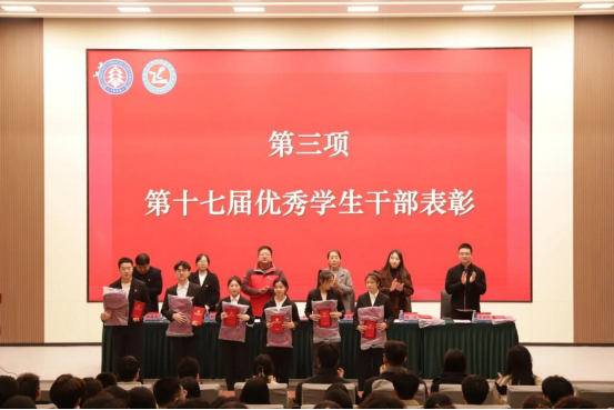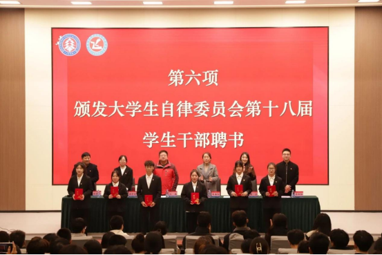 与会领导为十七届自律会优秀学生干部颁发任职证明。