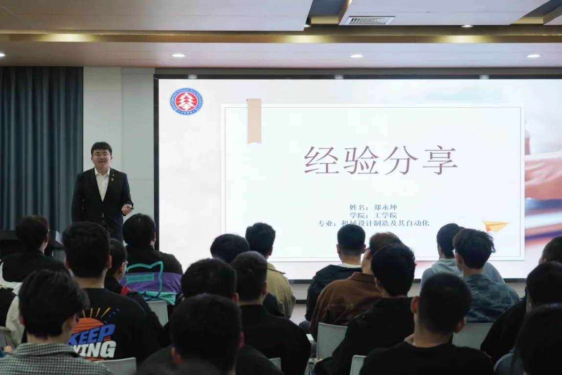 郑永坤同学就什么是大奖大赛进行了详细的讲解,他结合自身经历给同学们介绍为什么要参加大奖大赛,着重介绍了自己参加大赛的经验。他指出多与老师、学长学姐交流经验,获取大赛相关信息,选择队友,合作完成项目,制作项目计划书、视频要吸人眼球,给人以震撼,不要惧怕失败,敢于直面挫折,总结经验教训,最后,他以自身习惯给予学弟学妹激励,鼓励同学多多参与大奖大赛。