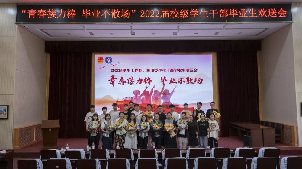 六月的夏天,温暖而炙热,天空中闪烁着耀眼的阳光,在这个美好的初夏时节里,为欢送毕业生,学生工作处(团委)于5月27日中午12:00在南校区学术报告厅举办“青春接力棒,毕业不散场”2022届学生工作处、校团委毕业学生干部欢送会。出席本次活动的领导有学生工作处处长、校团委书记龙新良,学生组织指导老师姚亮、吴洪磊、陈玉玲、顾学花、刘旭、李阳阳、周兰。