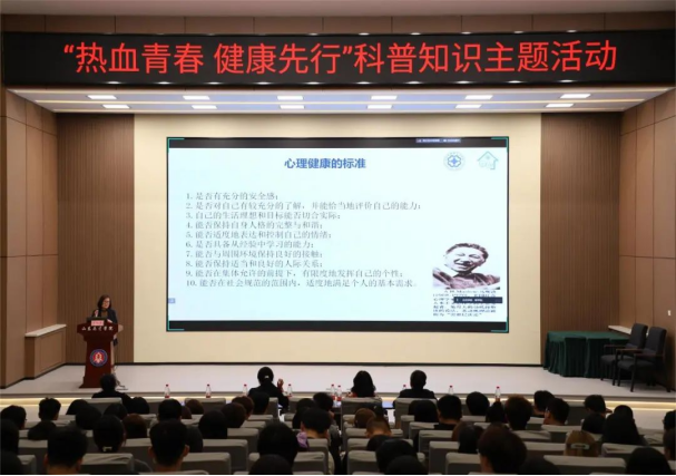 李翠鸾博士,副主任医师、心理咨询师,现担任中华医学会心身医学专业委员会危机干预学组委员、青年学组委员,中华医学会精神医学分会进食障碍研究协作组委员,山东省医师协会心身医学分会常委,山东省医学会心身医学分会委员,山东省健康管理协会睡眠专委会常委,山东省心理卫生协会家庭治疗学组常委、精神分析专业委员会委员。李翠鸾博士以《大学生心理健康管理》为题,从“什么是心理健康?”“常见的异常表现”“如何做好自我管理”三个方面为大家做心理健康教育。她向大家详细讲解了心理问题产生的原因及过程,并分享了常见的心理疾病所表现出来的异常行为,她强调做好自我管理是预防心理疾病的重要措施,要注意情绪管理,适当运动,规律作息,合理发泄消极情绪,合理膳食,遇到问题主动解决。