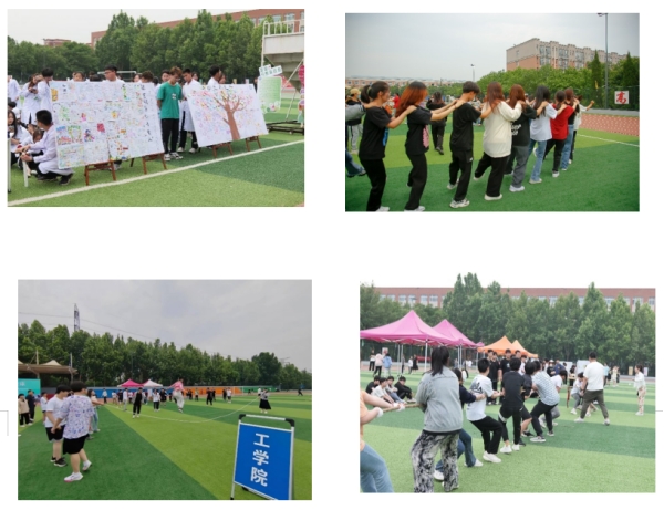 在现场,游园会设置心语区、趣味竞赛区、特色活动展区三大活动区域。心语区以寻找自我为理念,通过自画像、房树人等绘画活动,让学生自由发挥、自主创作。趣味竞赛区以运动解压、团结协作为理念,车轮滚滚、花样赛跑等形式多样的运动项目,使学生在活动中感悟到凝聚力与团队协作的魅力,同时释放了生活学习中的紧张与压力。特色活动展区,以集中展现各二级学院心理健康教育工作成果为理念,将本学院的专业特色与心理素质提升结合一体,开展属于自己学院的心理活动。