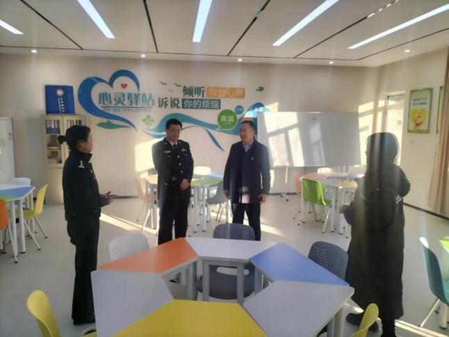 培训结束后,陈胜大队长、王颖科长等领导在高奎主任陪同下调研学校安全稳定工作,到学校警务室建设、心理健康教育中心和校园监控中心等地考察指导,交警大队领导对学校安全工作给予充分肯定。