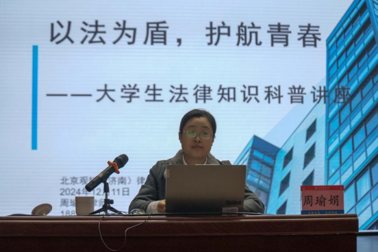 学法以启智,用法以自强。讲座的最后,周瑜娟律师劝诫各位同学们,作为新时代青年应知法守法用法,恪守法律红线,善于用法律保护自身正当权益,坚守法律和道德底线,让法律与青春相伴,用法律为青春护航。