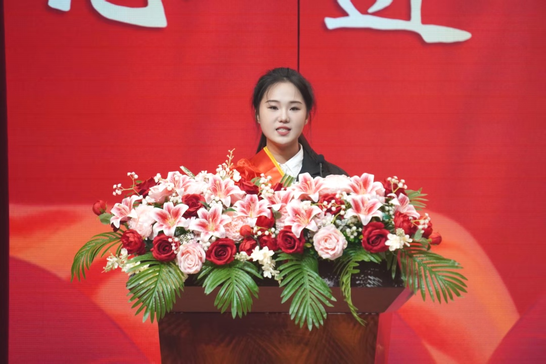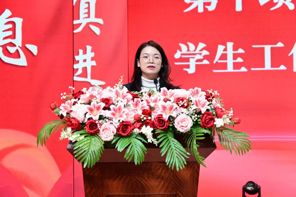 她回顾了过去一年的工作历程,分享了成长与收获,表达了对学校领导、老师以及同学们的感激之情,并寄语新一届学生干部继续发扬优良传统,勇于担当,服务同学,助力学校发展。