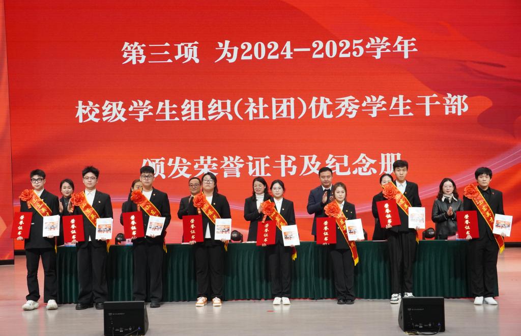 与会领导为2024-2025学年校级学生组织(社团)优秀学生干部代表颁发荣誉证书及纪念册