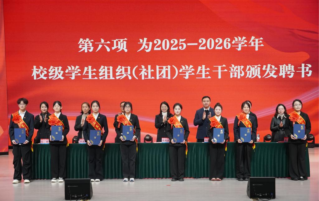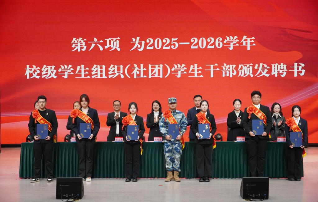 与会领导为2025-2026学年校级学生组织(社团)学生干部代表颁发聘书