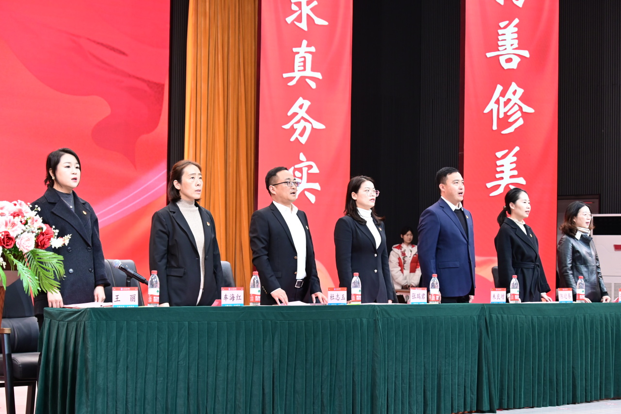 校长助理、团委书记、学生工作处处长张瑞君作总结讲话。她充分肯定上一届学生干部的辛勤付出与取得的成绩,并对新一届学生干部提出明确要求:一要筑牢信仰之基,把准青春航向,做立场坚定的“明白人”;二要练就过硬本领,提升服务能力,做知行合一的“实干家”;三要践行服务宗旨,当好桥梁纽带,做心系同学的“贴心人”。她希望全体学生干部牢记“自强不息 与时俱进”的校训精神,团结协作、守正创新,共同谱写英才团学工作新篇章。大会在全体齐唱《共青团团歌》和《英才之歌》的激昂旋律中圆满落幕。