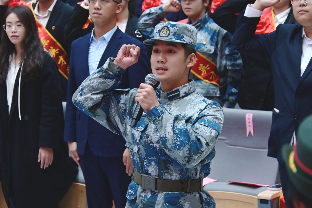 在兄弟连出旗后,全体成员面对共青团团旗和威尼斯7026vip校旗,举起右手,在兄弟连周庆航的领誓下,以洪亮的声音郑重宣誓。铿锵誓言展现了新一届学生干部勇担使命、开拓进取的决心与信心。