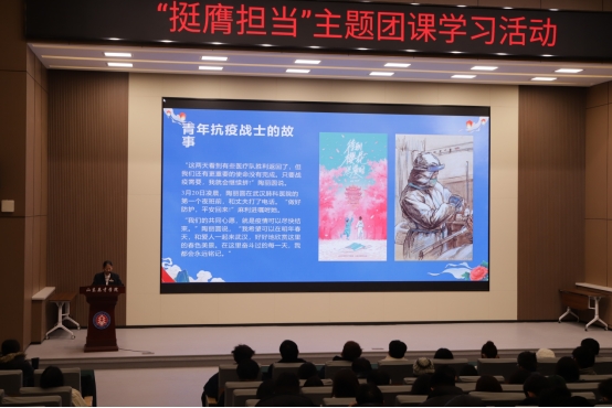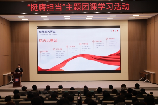 团课以“挺膺担当”为主题,通过诠释“铁人精神”“抗疫精神”“航天精神”,引导英才学子要努力在为人民服务中茁壮成长、在艰苦奋斗中砥砺意志品质、在实践中增长工作本领,保持敢于担当、勇于奉献的精神,保持艰苦奋斗、永不服输的韧劲,为实现中华民族伟大复兴的“中国梦”不懈奋进。