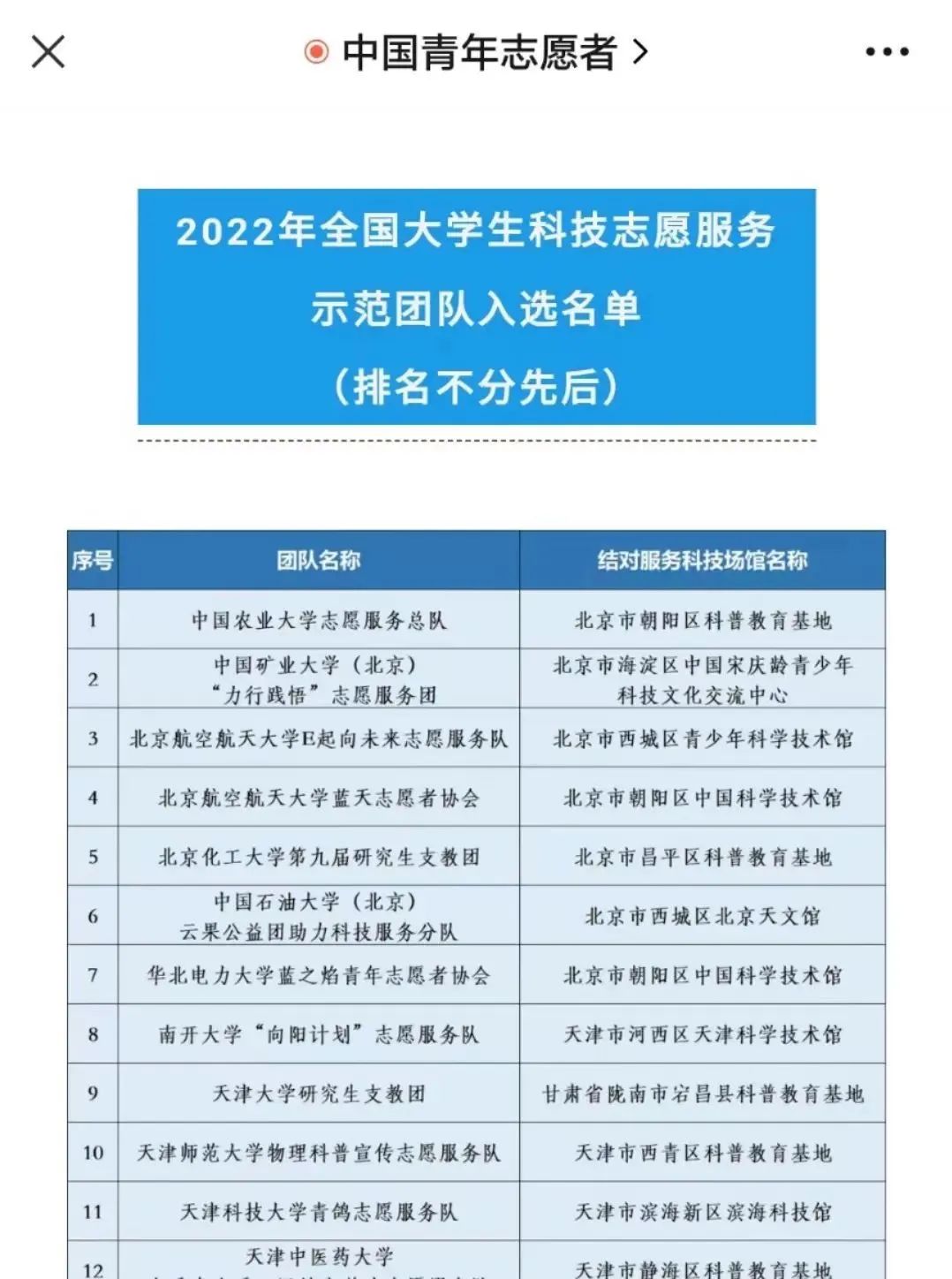 威尼斯官网“威尼斯7026vip青年志愿者协会”入选“全国大学生科技志愿服务示范团队”!