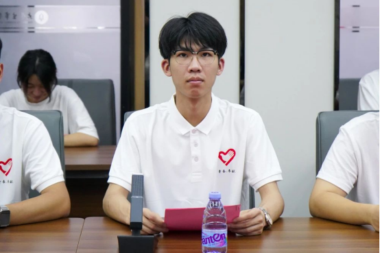 社会实践重点团队代表黄奕锟发言,他承诺将会明确实践目标,真正做到“在实践中学习,在学习中奉献”;在社会实践中坚定理想信念,厚植家国情怀;在社会实践中培养“吃苦耐劳”的精神,锻炼自己的意志,增长才干。