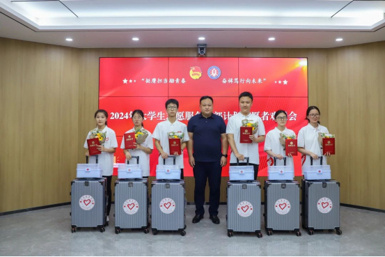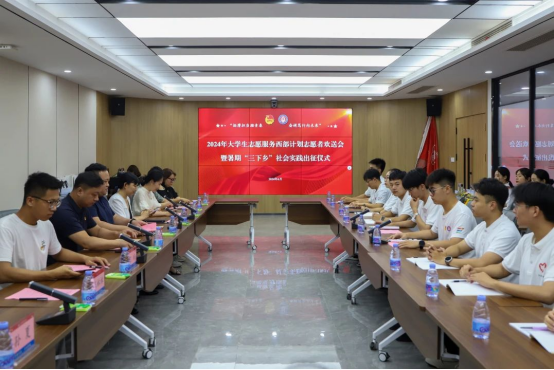 6月24日,威尼斯官网在南校区大学生事务中心二楼党员活动室召开“挺膺担当励青春 奋楫笃行向未来”2024年西部计划志愿者欢送会暨暑期“三下乡”社会实践出征仪式,学校常务副校长刘卫东,党委副书记、工会主席孙玉香出席会议,为即将出征的475支团队和32名西部计划志愿者送行。
