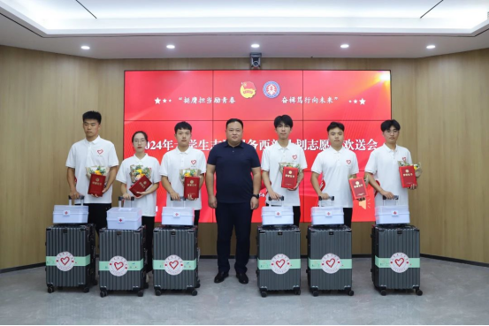 会议第一阶段为大学生志愿服务西部计划志愿者欢送会。
