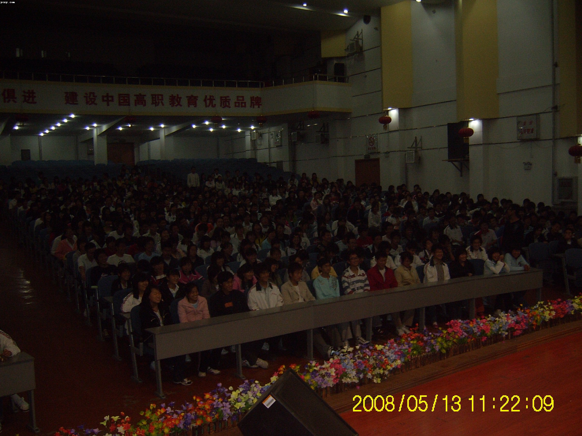 2008年5月13日,让古戎公司总经理何永宗在大学生活动中心为同学们作报告。