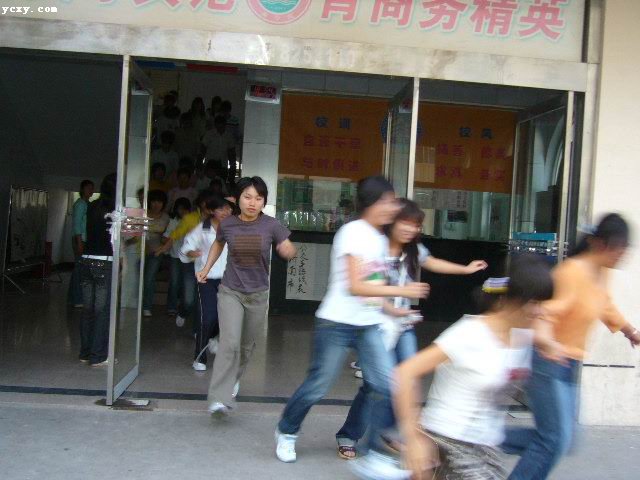 2008年6月4日至5日,商学院组织同学们进行了两次防震演习。