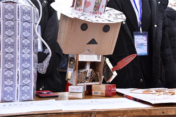 为进一步消除学生宿舍使用违章物品带来的安全隐患,加强宿舍管理,推广学院学生素质教育发展,从思想上增强广大学生的安全防患意识,共创安全、和谐的宿舍环境,更好的构建和谐校园,突出宿舍安全对文明宿舍的意义,同学们积极参与、开动脑筋,利用烟、烟盒、扑克牌、打火机等违禁物品制作出了许多精巧的手工品,可谓别出心裁,展现出了信息工程学院学子们别样的风采。