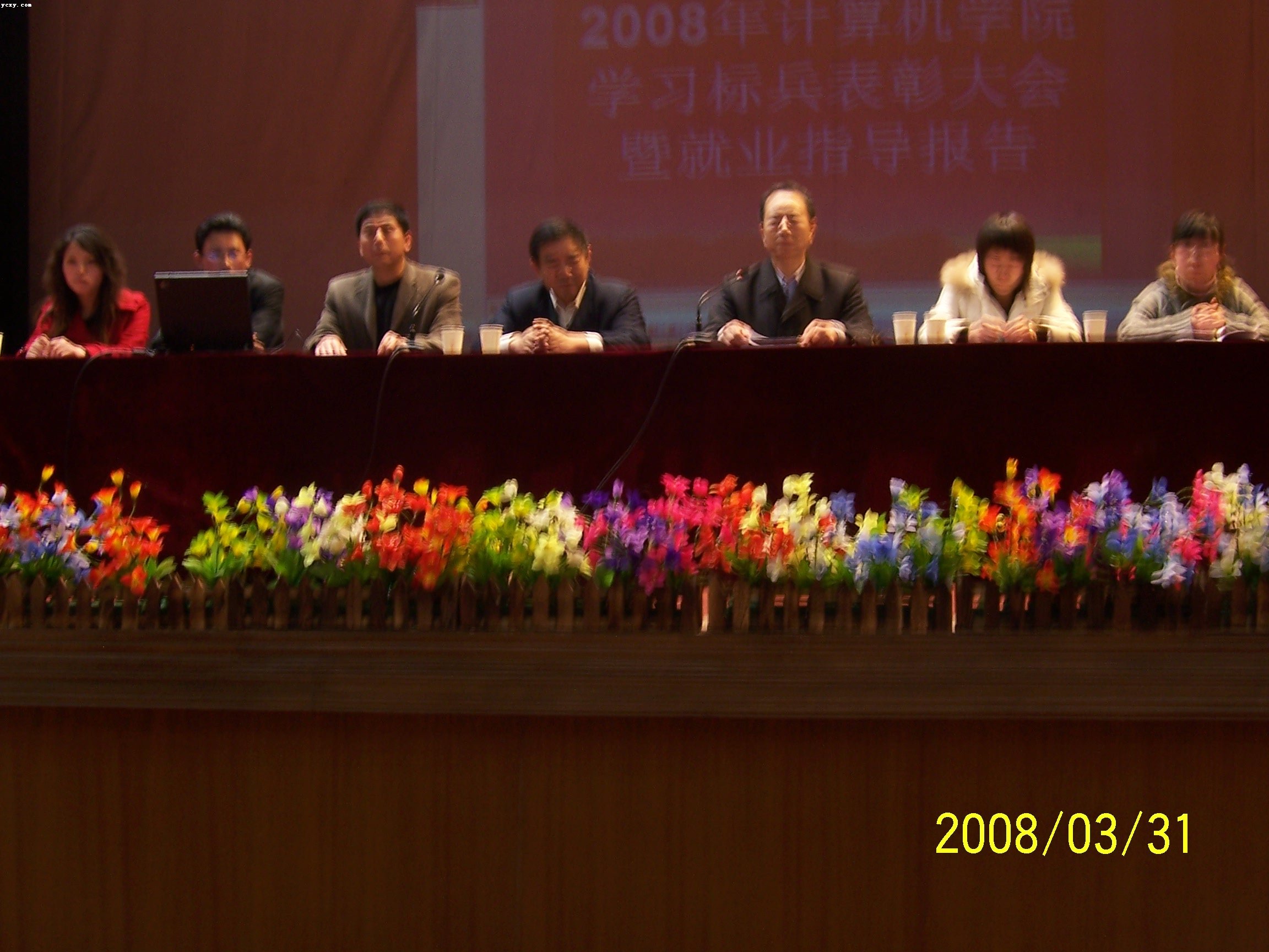 为了表彰先进,弘扬正气,进一步推进我院的学风建设,促进同学们勤奋学习,自觉学习,努力学好文化知识和专业知识,不断提高自身素质,以适应未来社会和经济发展的需要。计算机电子信息工程学院于3月31日晚在大学生活动中心举办了“2008年计算机学院优秀学习标兵”表彰大会。出席本次会议的学院领导有计算机学院院长刘院长、教学副院长吴院长、行政副院长李院长、团总支书记郑老师等学院全体辅导员老师。