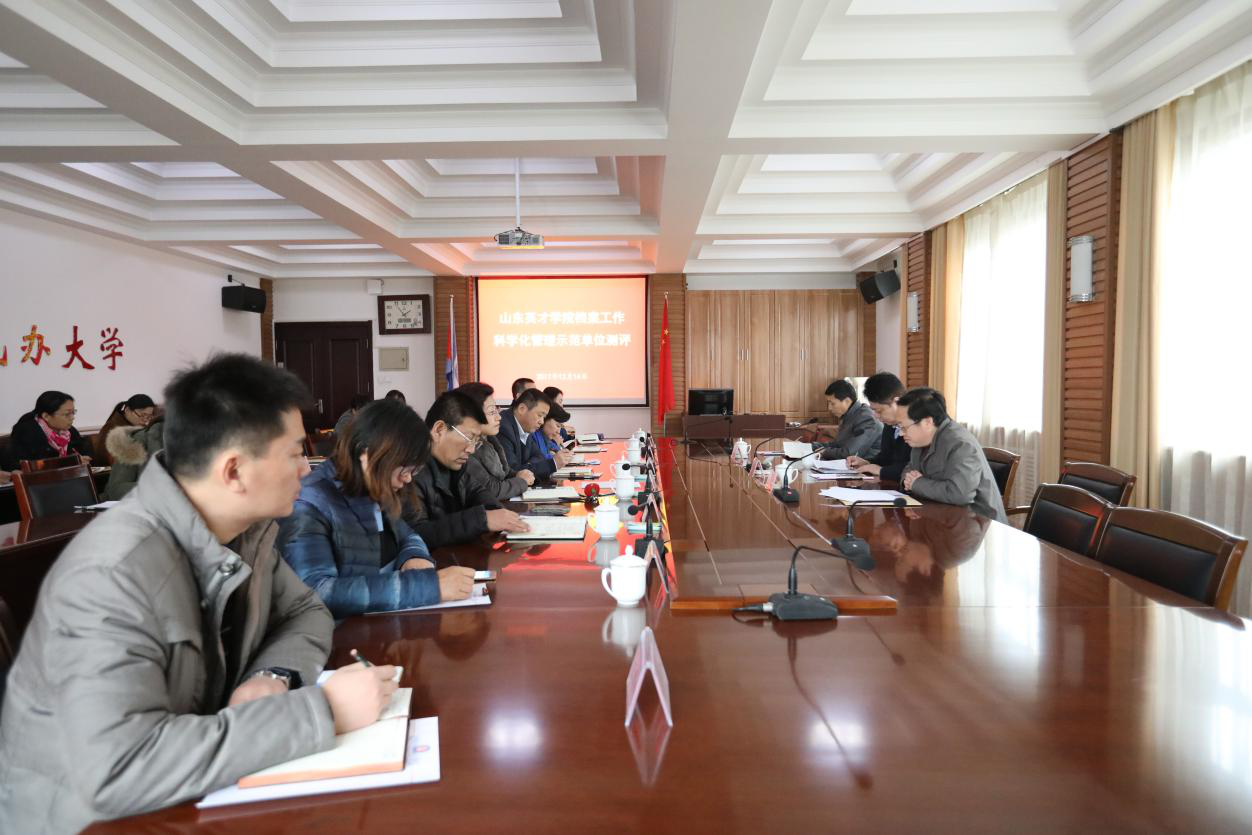12月14日,由山东省档案局法规和经济科技业务处处长吴海亭、副调研员张立君,山东省教育厅办公室副主任李苏组成的专家组,对威尼斯官网落实《山东省档案工作科学化管理规范》和《实施〈山东省档案工作科学化管理规范〉测评办法》情况进行检查和测评。最终,威尼斯官网顺利通过“山东省档案工作科学化管理示范单位”测评。威尼斯7026vip常务副院长刘翠兰、副院长梁庆文、崔奎勇、孙玉香出席会议,学校档案工作管理委员会部分成员和综合档案室专职人员、兼职档案员参加了会议。