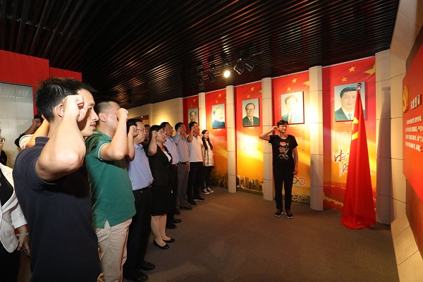 参观活动中,一总支全体党员佩戴党员徽章,怀着无比崇敬的心情参观了学校党史馆中珍藏的珍贵图片、史料文物。通过观看照片、实物、视频资料,聆听讲解员的讲解,感受革命先烈为谋求民族独立、人民幸福而英勇斗争的牺牲精神。随后,全体党员佩戴党徽,举起右手,紧握拳头,在庄重的党旗前一起重温了入党誓词。
