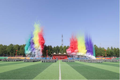 树树皆秋色山山唯朝晖。枝头满硕果英才又济济。常务副校长刘卫东讲话并宣布开学。五彩烟齐刷刷冲向天际,仿佛在热烈欢迎新同学的到来,他希望新生同学,牢记国家需要听从时代召唤,做一个心怀家国的人;牢记社会责任勇于担当奉献,做一个向阳而生的人;牢记家庭期盼不负谆谆叮嘱,做一个心怀感恩的人;牢记个人发展明确奋斗方向,做一个充实向上的人。