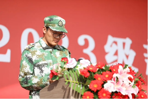 学前教育学院本科2303班许超、工学院2023级本科智能车辆工程班的梁燕慧龙作为学生代表发言,他们对即将开启的大学充满了憧憬,他们表示,军训期间,走过了劳累和艰辛,收获了友谊和成长。在未来的四年里,愿与同学们一起奋斗,一起微笑,一起面对,承载梦想,共铸辉煌。