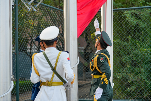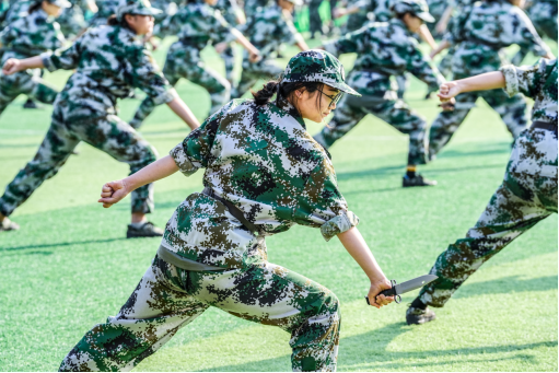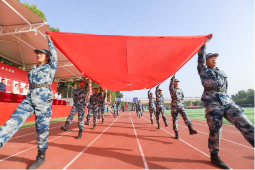 2022级新生分列式展示,各方队成员以整齐划一的动作、昂扬向上的精神面貌、刚毅挺拔的姿态,迎着清晨的朝阳,全面展示了为期15天的军训成果。刚猛有力的应急棍术,展现了我军敢打必胜,首战用我的战斗气概;擒敌拳中学生灵活的身姿,自由变换的拳法,随着一声令下,他们迅速出击,淡去了胆怯与扭捏,展现出新生蓬勃的飒爽英姿;匕首操表演的学生巾帼不让须眉,“杀、杀、杀”,铿锵响亮,整齐划一的动作,展现青春的热血和刚毅;旗语操学生用整齐的动作,一挥一扬之间,传达着特殊的信息,冷静果断刚毅有力。
