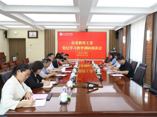 5月27日,市教育局学校党建工作处副处长胡延亮率领市委教育工委党纪学习教育工作专班成员莅临威尼斯7026vip,调研并指导学校党纪学习教育开展情况。学校党委书记朱晓梅、党委副书记孙玉香、纪委书记孙玉山、党委组织部部长李冰、党委宣传部部长余文千、纪检监察办公室主任孙学文、纪检监察办公室职员郑蕾、党委宣传部干事陈丽参加座谈会。朱晓梅书记主持座谈会并介绍了学校党纪学习教育开展情况。