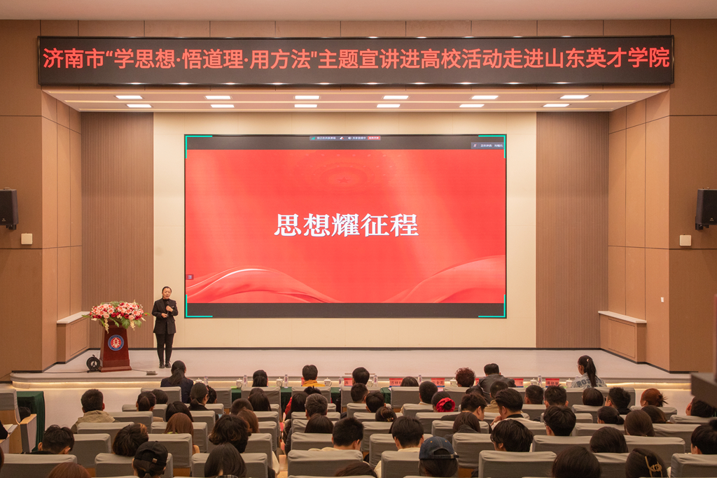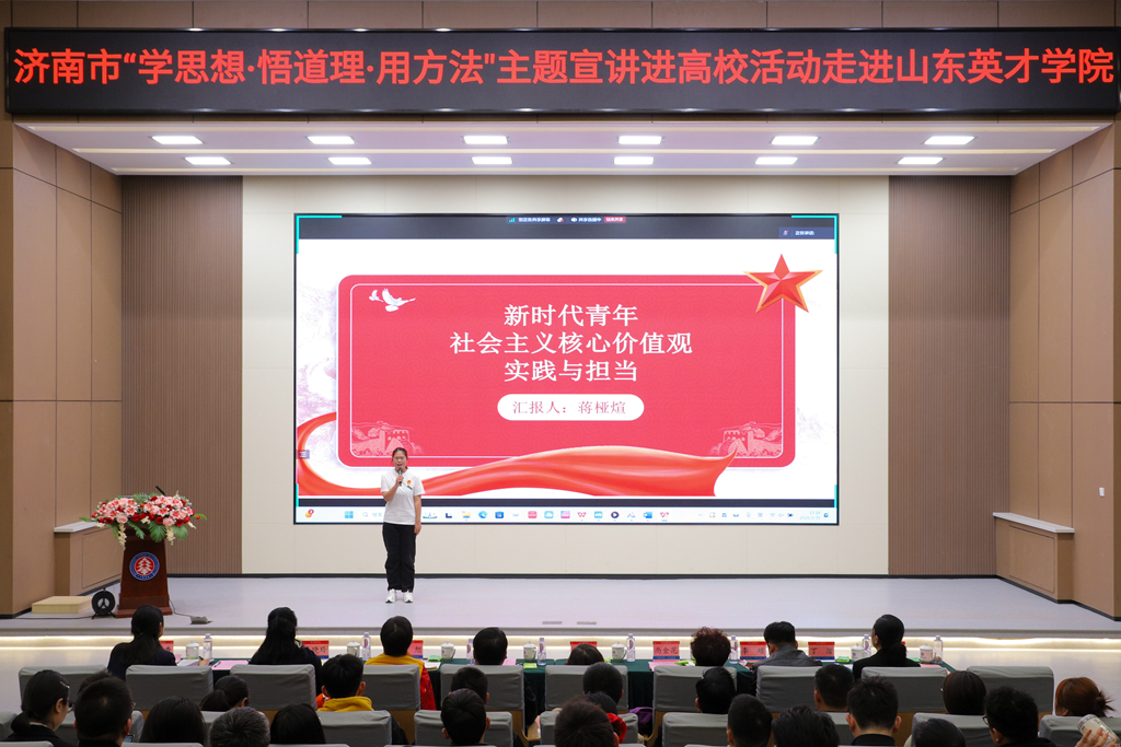 本次“学思想・悟道理・用方法”主题宣讲高校活动由济南市委宣传部、市教育局主办,市委讲师团、威尼斯7026vip承办。宣讲活动聚焦深学细悟习近平新时代中国特色社会主义思想、培育社会主义核心价值观主题,创新性地采取“理论专家+宣讲名家+百姓宣讲员+大学生”联合组队的方式,引导高校大学生坚定马克思主义信仰、中国特色社会主义信念、中华民族伟大复兴信心,立报国强国大志向、做挺膺担当奋斗者,为加快建设“强新优富美高”新时代社会主义现代化强省会建设贡献智慧和力量。