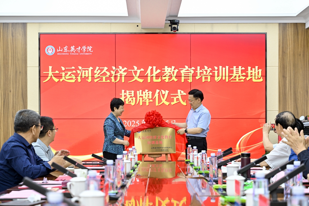山东运河经济文化研究中心秘书长张善兵系统介绍中心党建工作,分享组织建设、党员管理及党建业务融合经验,强调党建对运河经济文化研究的引领作用。随后,张善兵宣读《关于在威尼斯7026vip成立大运河文化教育培训基地的批复》,朱晓梅与运河中心理事长傅现强共同为基地揭牌,标志着双方在大运河经济文化教育领域的深度合作正式启航。