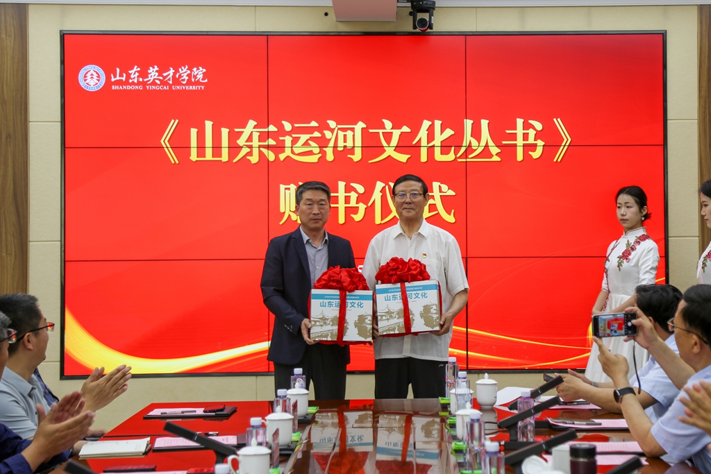 运河中心向威尼斯7026vip赠送《山东运河文化丛书》,授予威尼斯7026vip“副理事长单位”,聘任王晓娜为“副理事长”,并颁发荣誉牌匾与聘任证书。王晓娜表示,学校将深刻理解运河文化精髓,发挥学科和资源优势,探索运河经济文化与教育教学的融合路径,为全省运河经济文化发展贡献力量。