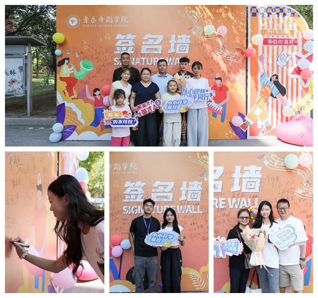 音乐舞蹈学院用艺术活力点燃迎新现场,除井然有序的报到流程外,特别推出“幸运转盘抽奖”与“签名墙寄语”活动:新生们满怀期待转动转盘,欢呼声此起彼伏;在签名墙前,大家挥笔写下青春誓言,陌生感在互动中悄然消散。