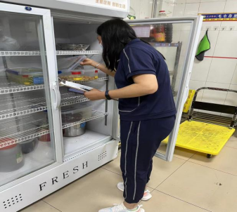 综合办副主任张中凯带领食品安全检查小组来到食堂操作间、食品留样间、原材料储藏间严格查验原材料选购、存储、加工制作、采集留样环节,随后,检查组一行前往校内商业街对菜鸟驿站、超市、水果店、台球室等重点部位进行突击检查,着重审查有无售卖临期、过期产品等违规行为,以细致、严格的工作作风保障师生舌尖上的安全。