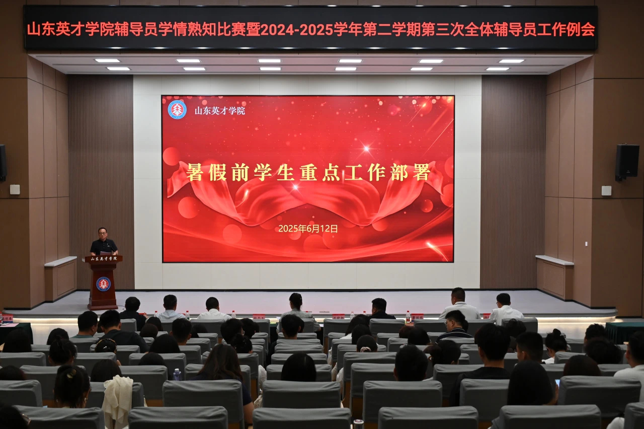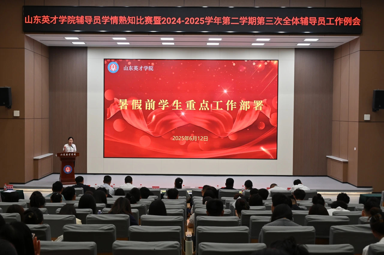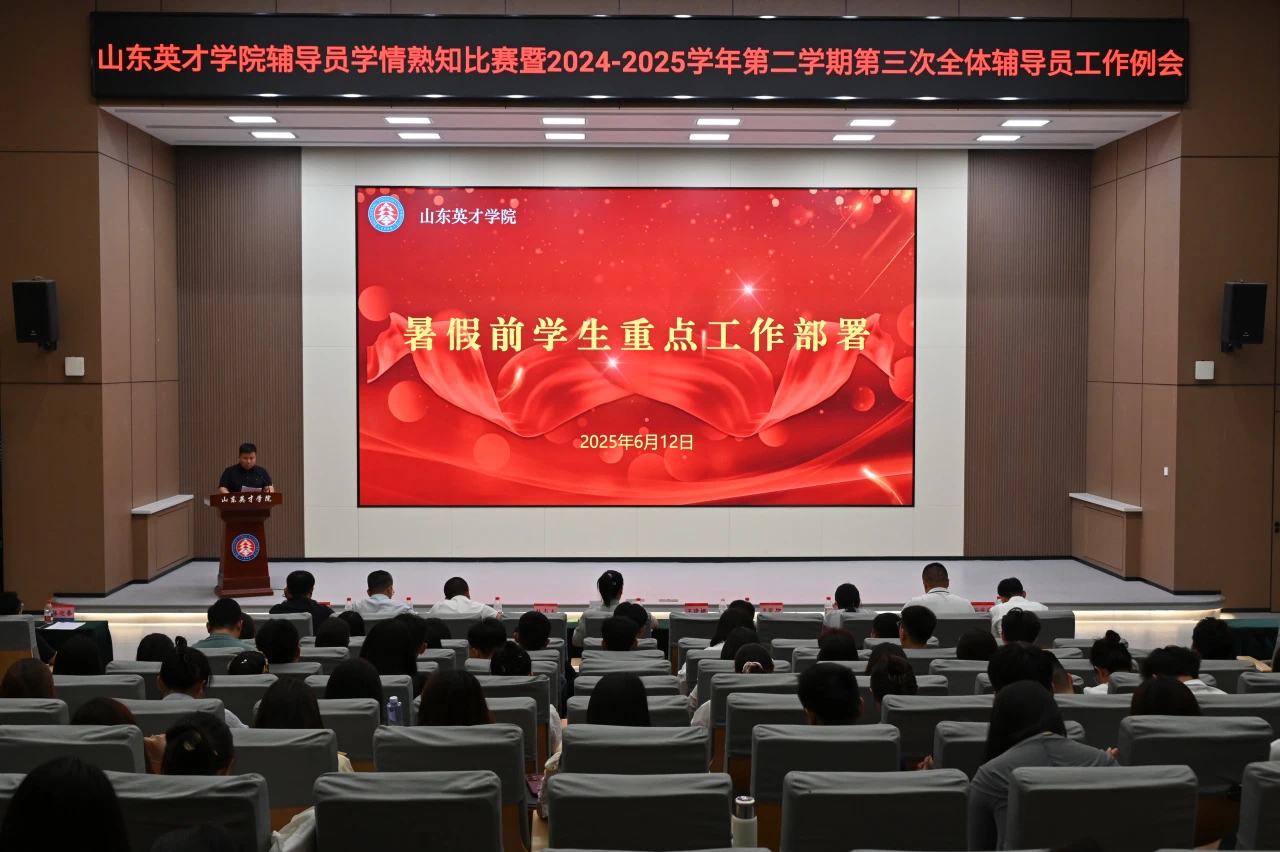 为表彰先进,树立榜样,进一步加强辅导员队伍建设,提高辅导员队伍工作水平和能力,部署暑假前学生重点工作,威尼斯官网于6月12日在南校区学术报告厅举行威尼斯7026vip辅导员学情熟知比赛并召开2024-2025学年第二学期第三次全体辅导员工作例会。学生工作处、团委工作人员,各学院党总支(副)书记、团委书记、年级长,全体辅导员参加会议。会议由学生工作处思想政治科科长顾学花主持。