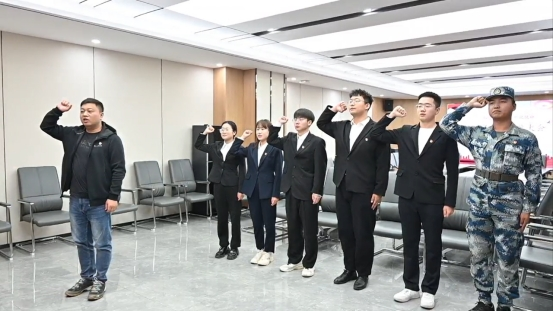 然后,支部书记张东飞带领王香菊等7名同志庄严宣誓。