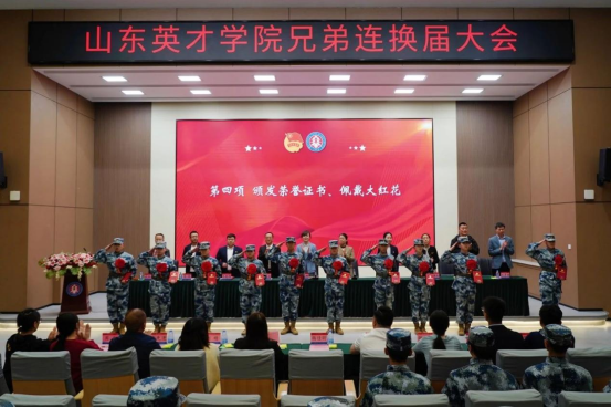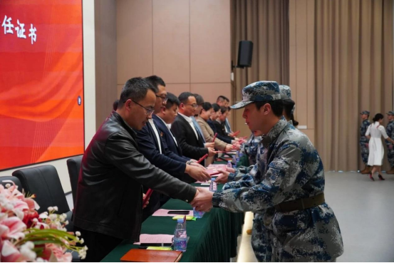 与会领导为第三届兄弟连队干代表颁发聘任证书。