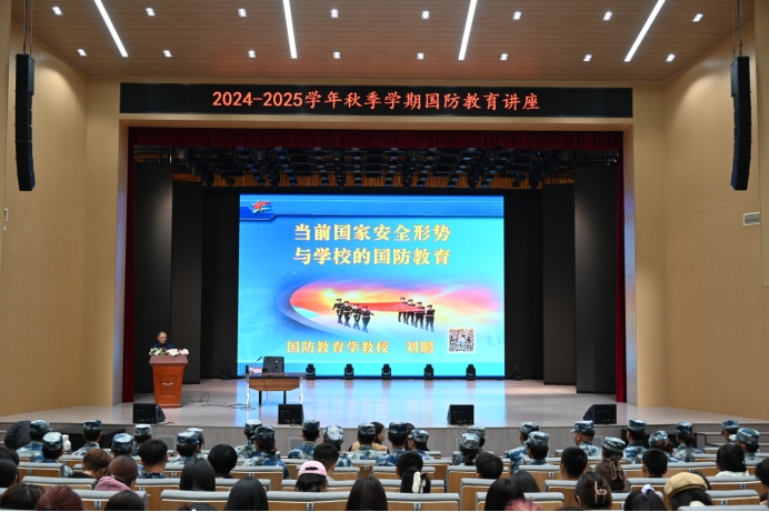 为深入开展国防教育系列活动,突出国家安全意识,加强学校国防教育宣传,增强广大学生的国防意识,促使学生关注和了解当前国家安全形势,激发广大学生使命感和责任心,支持学生投身国防事业、勇担国防使命的家国情怀。10月29日,学校邀请72241部队刘鹏大校在南校区音乐厅作《当前国家安全形势与学校国防教育》专题报告。学校副校长孙文红,学生工作处处长、校团委书记张瑞君,学生工作处、团委工作人员、学生代表、南校区2024级新生全体辅导员及兄弟连全体队员约800余人参加报告会。