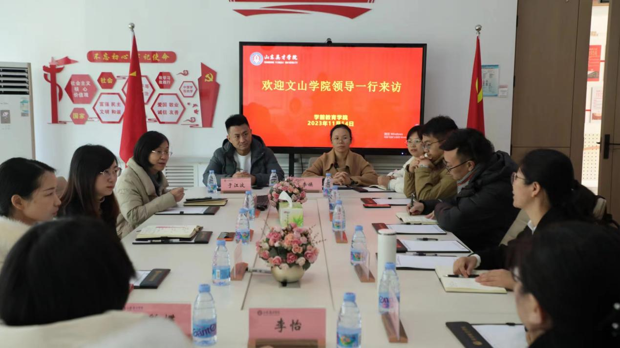 参观结束后,双方进一步展开了座谈。首先,郑雯院长对董院长一行表示了热烈的欢迎,并对我院学前教育专业建设的基本情况进行了介绍;随后双方就人才培养、课程体系和课程建设、实验实训条件建设、校外实践教学基地和协同育人平台建设以及师资队伍建设和卓越学生培养等问题进行了深入、细致的交流和分享。我院专业负责人张青瑞老师、教师教育教研室主任庄军红老师,分别介绍和分享了我院在专业建设、人才培养和课程建设方面的成果和经验。文山学院领导对我院的相关工作给予了高度评价,并表示将借鉴我院经验,进一步推进文山学院在人才培养方面的工作。