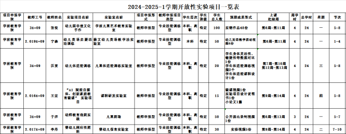 这些实验项目将于本学期第6周起陆续开课,为学生提供丰富的学习与实践机会。这些课程旨在培养学生的探究意识、创新精神和实践能力,同时为学前教育领域的发展注入新活力。