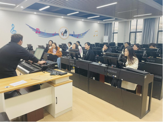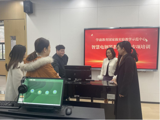 为深化信息技术与艺术教育的融合,提升学前教育专业教师的数字化教学能力,2025年3月11日,学前教育国家级实验教学示范中心在智慧电钢琴演奏技巧实验室(四)举办了“智慧电钢琴教学应用”专题培训。音乐教育教研室全体钢琴教师参加此次培训,进一步推动智慧钢琴教育在学前教育领域的实践应用。