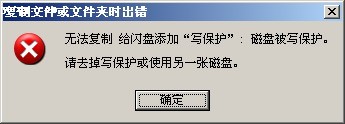 这样,别人想要在我们的电脑上修改U盘中的数据时,就会弹出一个警示窗口,告知U盘已被写保护(见图)。